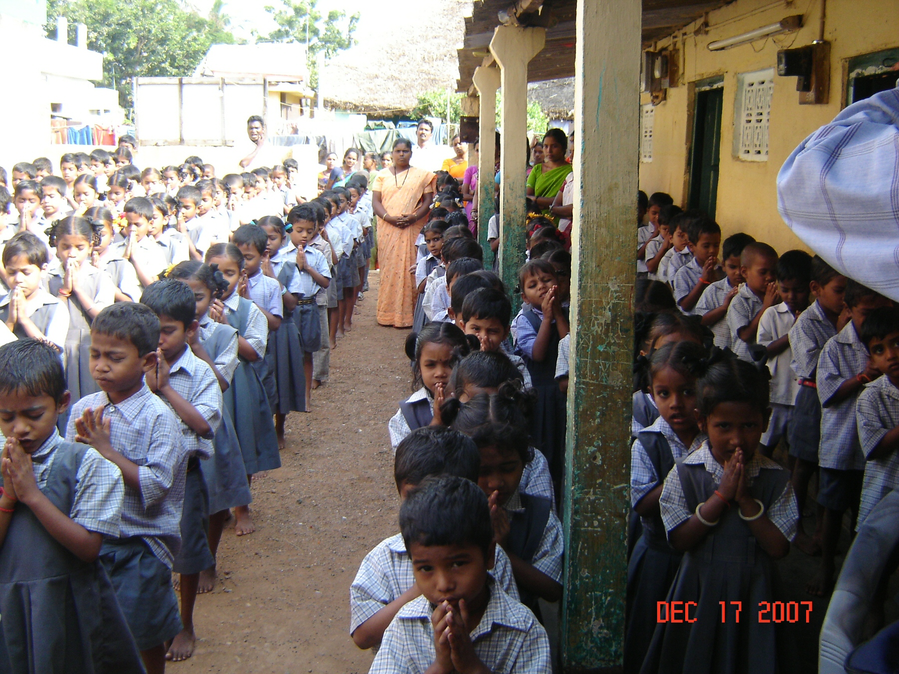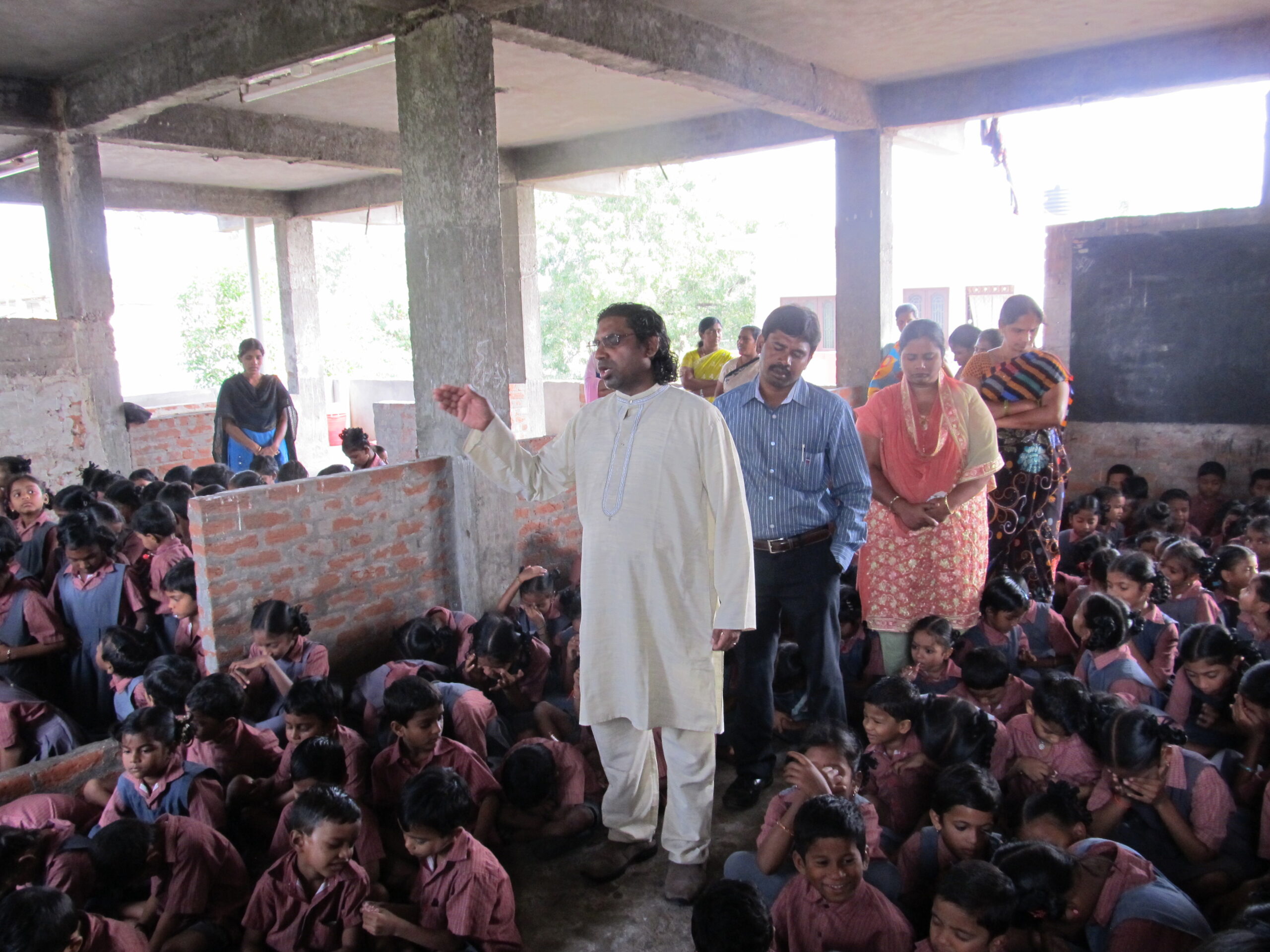 Dr. Rapaka praying for Love and Hope School children.